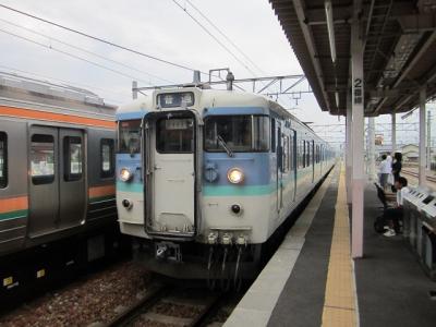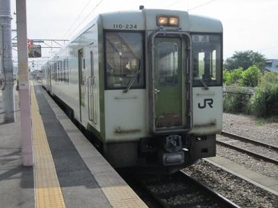 あと、1番線と2番線の間の線路に、はるばる首都圏からやってきた、昔の東海道本線に使われていた列車が留置されていました。風雨にさらされているためか、塗装などは白っぽくなっていましたが、逆に車輪あたりはオイルで黒々としていたりと、これからこの車両をどのような運命が待ち受けているのか、少し気になるところではありました。- 旅行時期