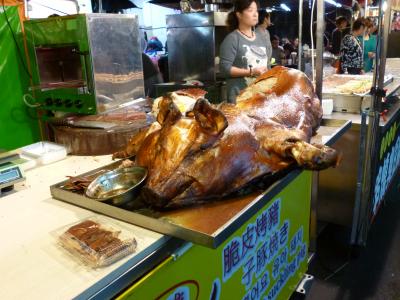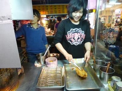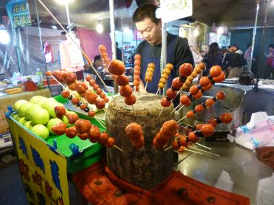 地元の人たちも集まる、庶民は夜市です。から揚げ、飲茶、かき氷・・・とにかくガイドブックで目にする台湾フードが並んでいます。食べ歩きもよし、座って食べられるスタイルの屋台もあるのでそちらを挑戦するもよし!!バイク大国台湾ならではのスタイリッシュなマスク屋さんや、青空床屋さん、激安靴屋(しかもカワイイ)・・・食べ物以外もいろいろなお店があります。