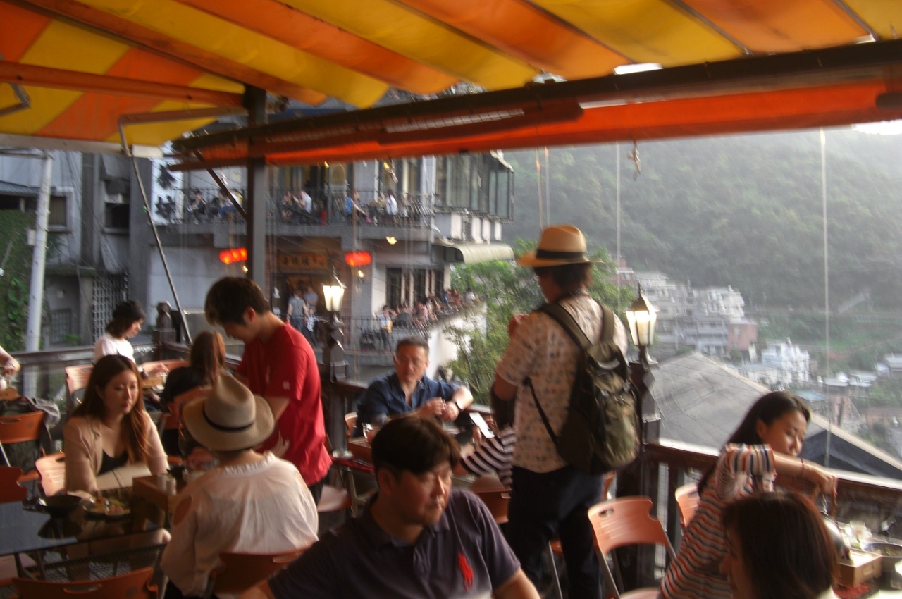 金の積み出し鉄道のあった山の反対側は有名な観光地の九份。- 旅行時期