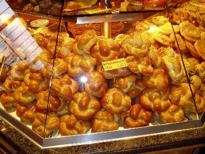 フランクフルトの市場、クラインマルクトの中にあるBACKWERKというパン屋さんのBUTTERHEFEKNOTENという一つ1.2ユーロのパンはとにかく美味しい!!
