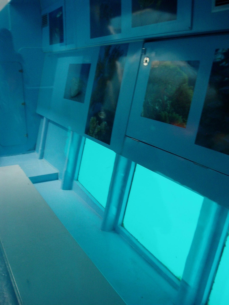 船底はガラスです。海洋学者も同乗しますので、海の生物について質問も出来ます。(基本的に英語)