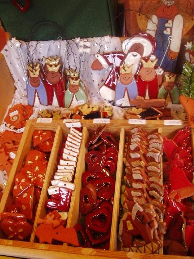 写真のお店の素焼きのクリスマスオーナメントは、素朴で素敵でした。