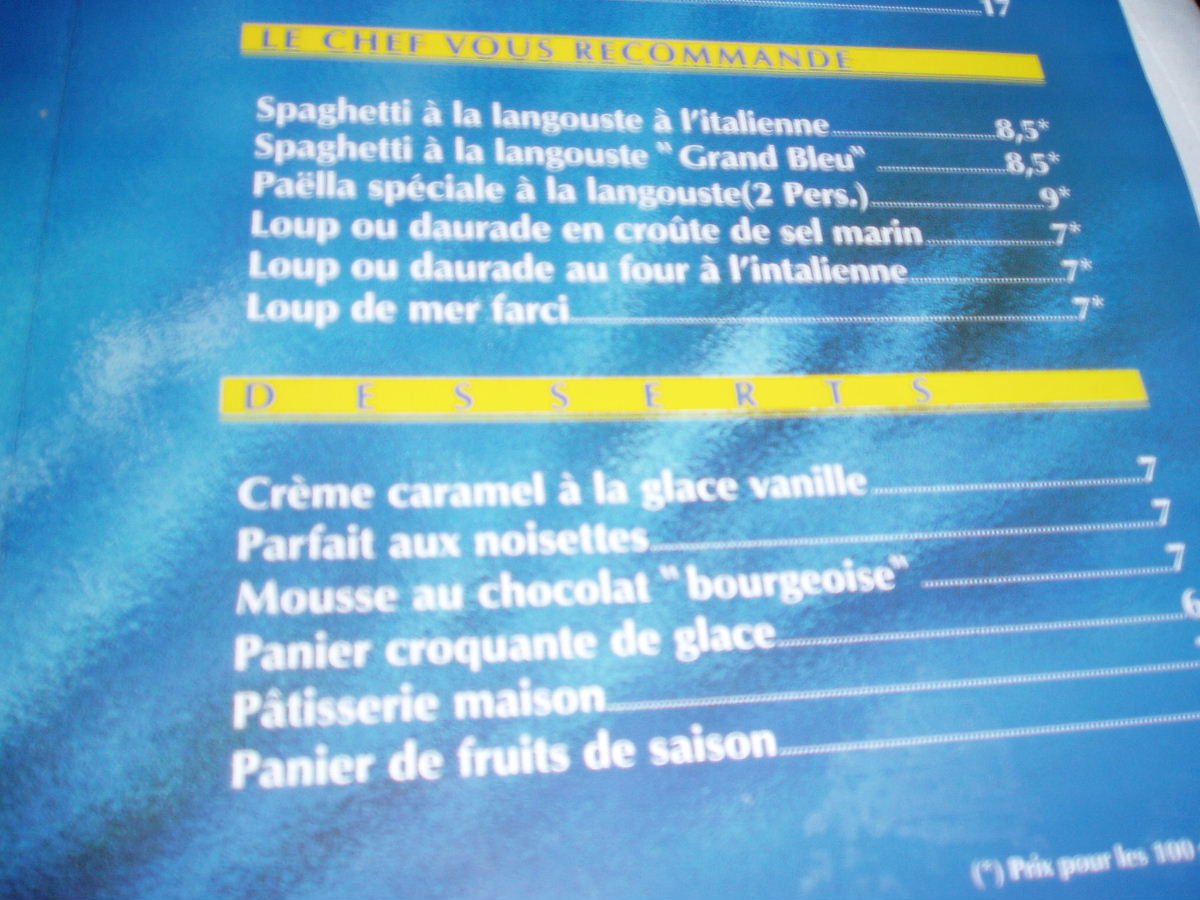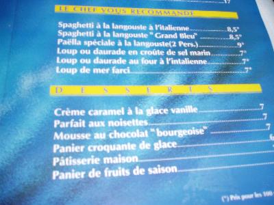 メニューはフラ語のみですが、ウェイターさんの中には英語を話す人もいますので、英語で説明して。とお願いすれば親切に説明してくれました。
