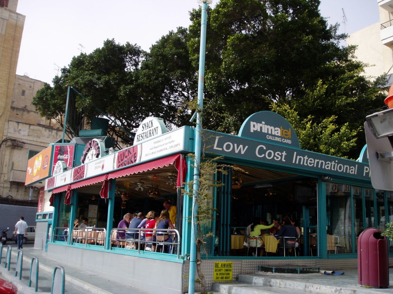 Slimaの海岸沿いの中心地にある、お天気がいいときはオープンエアーになるカフェ:Magic Kiosk。