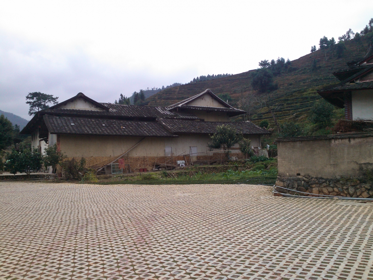 中庭でこの地方の産物、緑茶、ピーナツ、シイタケなどを売っていた。
