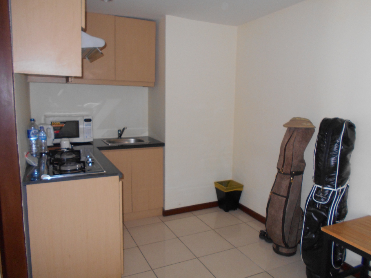 またHPではこの部屋はフルッチンと記してあったが、設備は貧弱。調理器具は無いに等しいし、食器類は皆無、ハワイのコンドとは大違いだった。