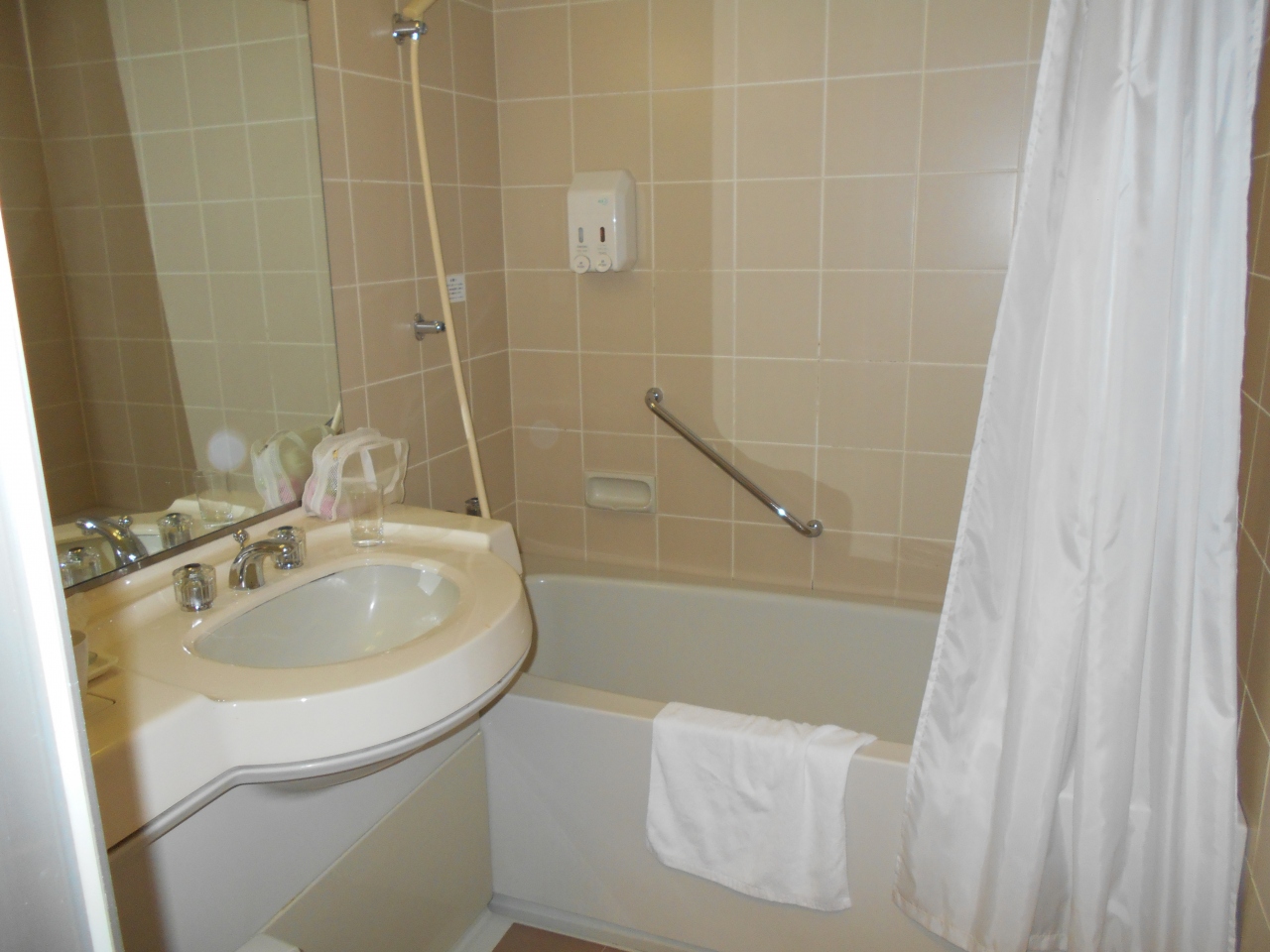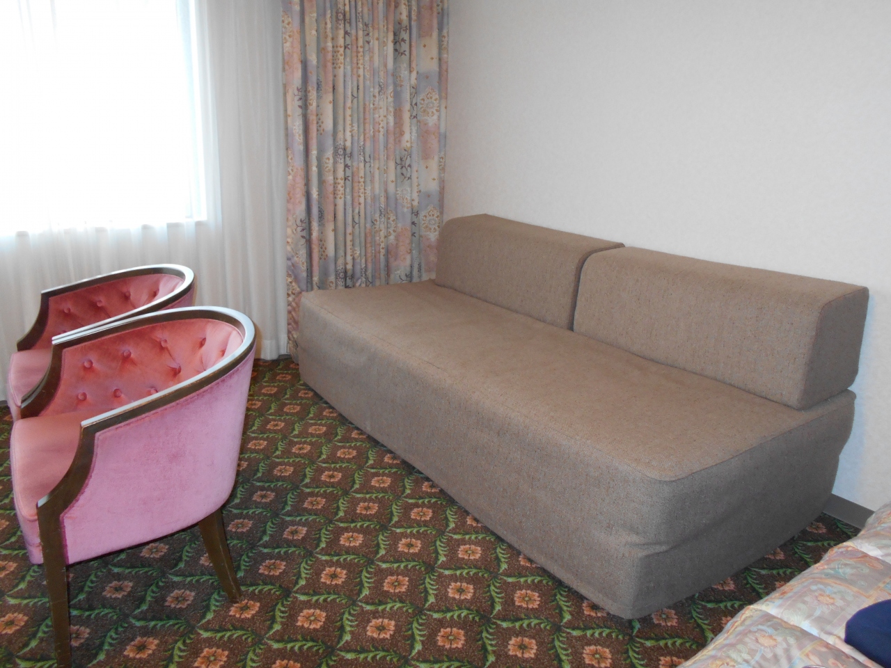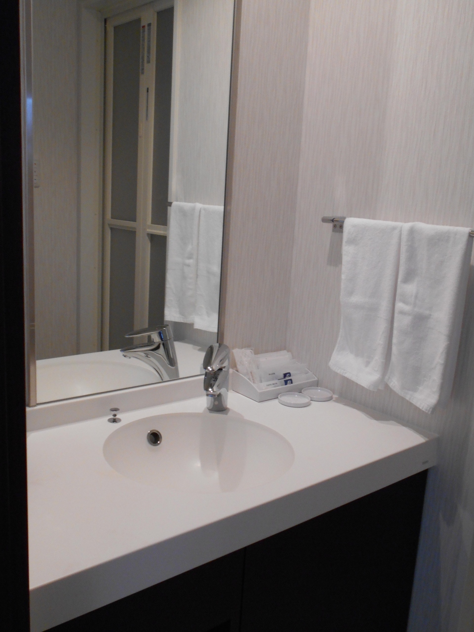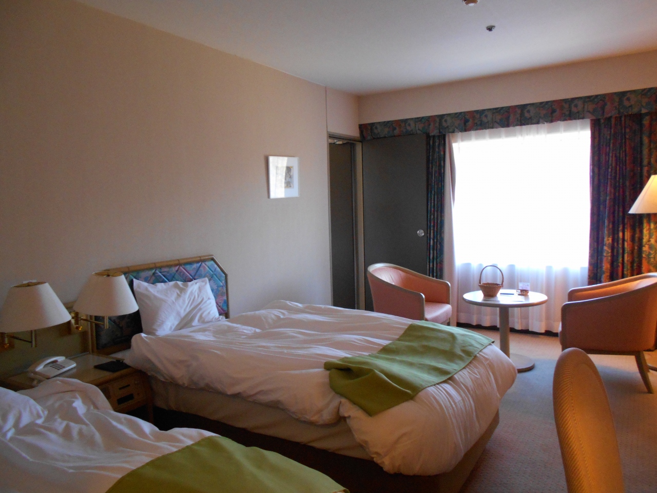 - ツインの部屋は結構広く,洗面所も広めで使いやすかった。ただ床の絨毯はすり減っていた。