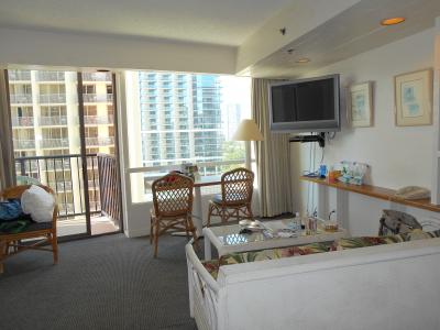 またHPではこの部屋はフルッチンと記してあったが、設備は貧弱。調理器具は無いに等しいし、食器類は皆無、ハワイのコンドとは大違いだった。