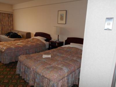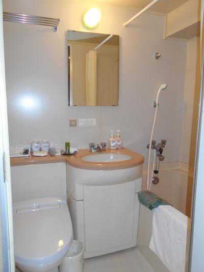 - ツインの部屋は結構広く,洗面所も広めで使いやすかった。ただ床の絨毯はすり減っていた。