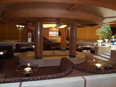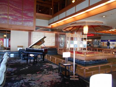 パブリックスペース:ロビー、ウエイティングルーム、クラブ&バー、エンテターテイメント会場、ショップなど施設は充実、内装や調度品も高級旅館らしい。エレベーターの扉は各階毎に異なった絵が描かれている。パブリックスペースはなるほどと納得できた。