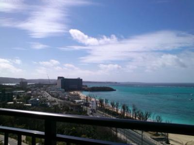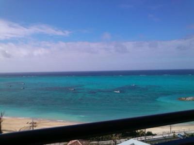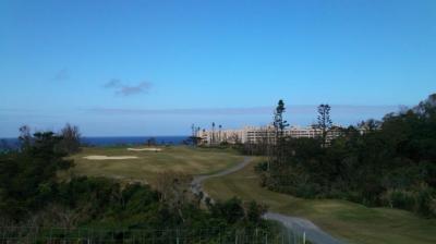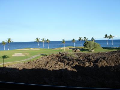 宿泊した部屋はマウナラニCCのグリーンの真ん前。グリーンの向こうにコバルトブルーの