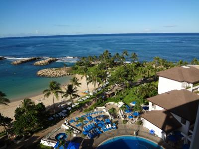 一昨年、コオリナビーチビラに宿泊した時は、アウラニリゾートは建築されていなかった。イヒラニとは目と鼻の先にあり、イヒラニの前のビーチにでればその外観がみてとれる。イヒラニはJALが持っていた時に泊まったことがあるが、その時の印象より、今回の宿泊のほうがはるかによかった。池にエイとか子ザメなどいなかったように思う。