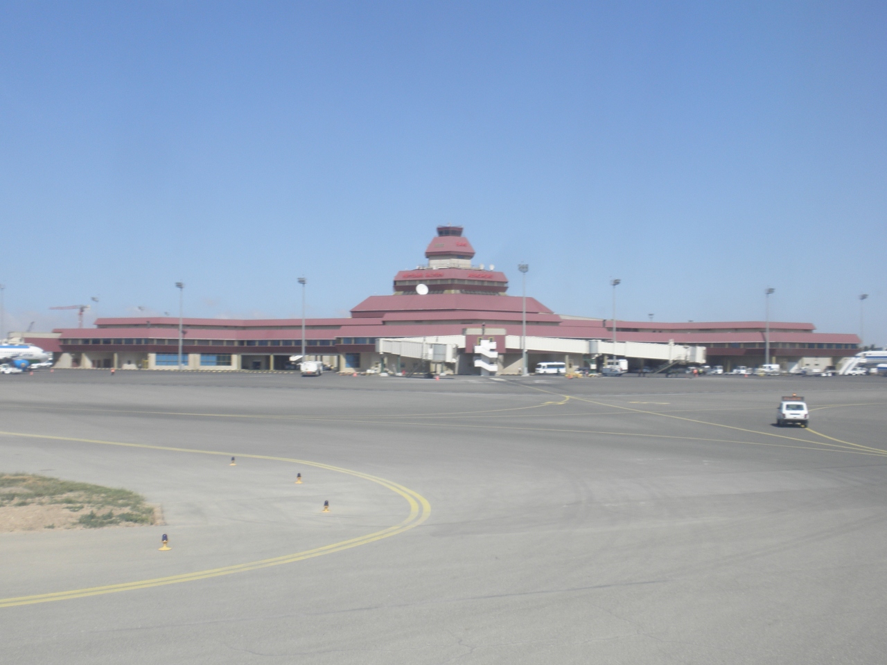 空港から市内地下鉄駅(28MAY駅)まで、16番のマイクロバスで、30セント(約30円)。タクシーは、20マナト(約2千円)。16番のバスは、空港のタクシー屋さんを邪魔しないよう、駐車場の奥、バス停もなにもないところに止まっている。1時間2本程度。ただし、荷物はあまり詰めないので、スーツケースが大きいと、乗せてもらえないかも。乗ってる人は、ほぼ現地の人。