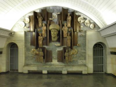 1.ソ連時代に作られた地下深く走るメトロ。車両もソ連時代の型式。駅に、エスカレーター監視の女性、ホームには手信号を持った女性職員、これもソ連時代のシステムから変わってないものと思う。駅の入り口付近には、金属探知機を持った警備員が、リュックやカバンなどをチェックしている。