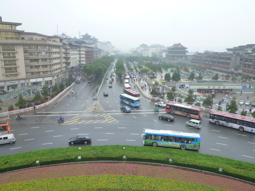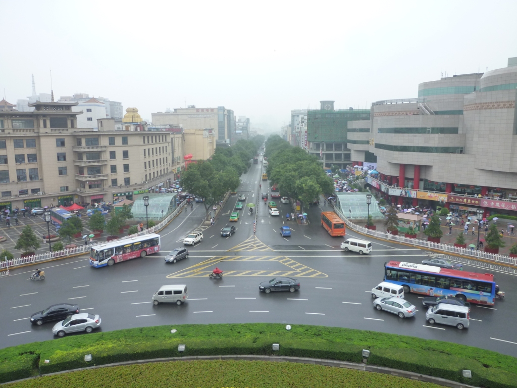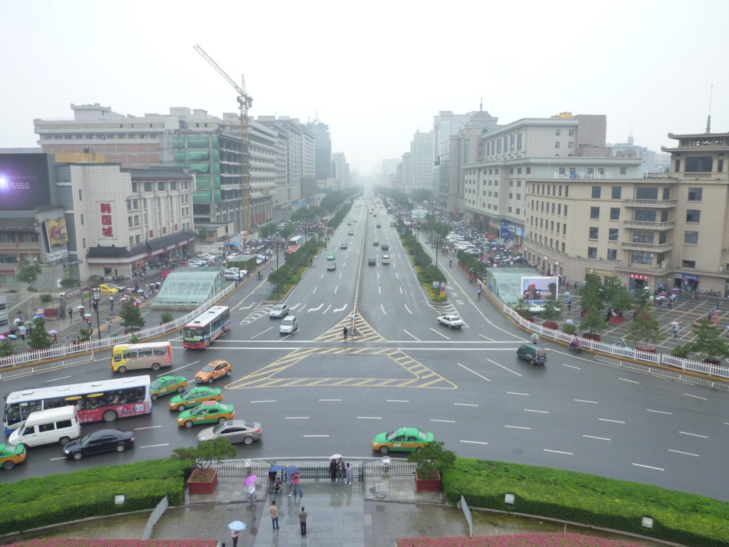 西安は中国の中でも歴史的雰囲気の漂う街です。私は沿岸部を主体に10箇所以上の都市を訪れましたが、私のこれまでの中で一番のお気に入りの場所です。近代的なビルも柱・梁が赤色、屋根が瓦屋根など街並みが整備されています(東大街は工事中でした)