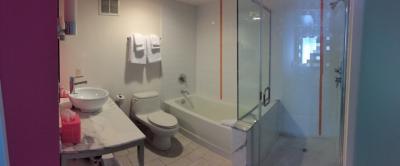 お風呂はシャワーしかないですが部屋はリノベ済みでとても綺麗でした。パークへのバスも朝は結構本数がありますが、利用者も多いので、数本見送る事も多かったです。接客が親切でした。