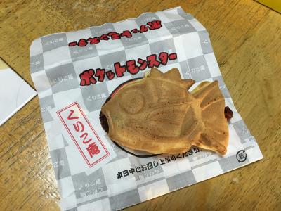 たい焼きで有名なお店ですが、ポケモンのコイキングたい焼きが販売されたときいて行ってきました。たい焼きはもちろんですが、このお店の、ミルク餡の入った、くりこまんじゅうが大好きな私ですが、今回は、コイキングを。とてもよくできていて食べるのがもったいないくらいでした。もちろんおいしかったです。