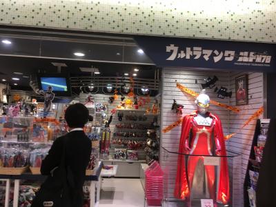 東京駅のキャラクターストリートにあるウルトラマンのお店です。今、20代の息子と中3の息子は子供のころに、ウルトラマンにハマり歴代のウルトラマンの人形を買ったりもらったりして今でも家にしまってありますが、テレビ放送していない今でも根強い人気なんですね。大きなウルトラマンセブンの人形がとても目立ちます。