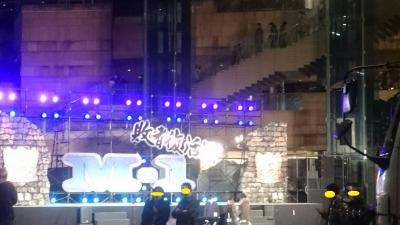 六本木ヒルズビルとテレビ朝日の間にある円形の野外ステージです。屋根もあるので少しくらいの雨なら全然大丈夫そうです。この日は明日生放送の、M−1グランプリの敗者復活戦のリハーサルと準備がおこなわれていました。