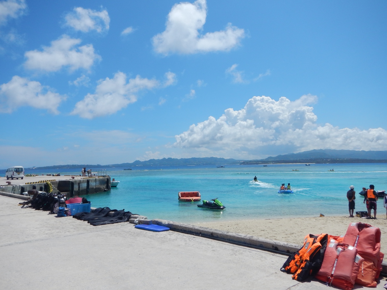 北部ダイビングの休憩で寄っただけなのですが、砂の白さとどこまで?と思うほどの透明感、ただただ感動してました。お盆休みだったので人もたくさんいて、バナナボートやパラセール、そして海水浴をしている人でとても賑わっていました。本島からたった15分くらいの所にこんな綺麗な島があるなんて!です。