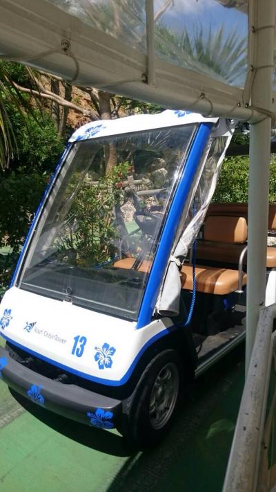 お天気に恵まれたせいもあり本当に素晴らしい眺めで、いつまでも見ていたくなるようなコバルトブルーと、エメラルドグリーンの海が広がっています。タワーまでは電自動というのでしょうか、かわいい車がはこんでくれてそこからも素晴らしい海の景色が眺められます。タワーの中には、たくさんの種類の貝、珊瑚など展示されていておしゃれなレストランやお土産屋さんもあり、屋上では記念撮影もしてくれて、なかなか楽しめます。お天気がよければ是非訪れてほしい場所です。