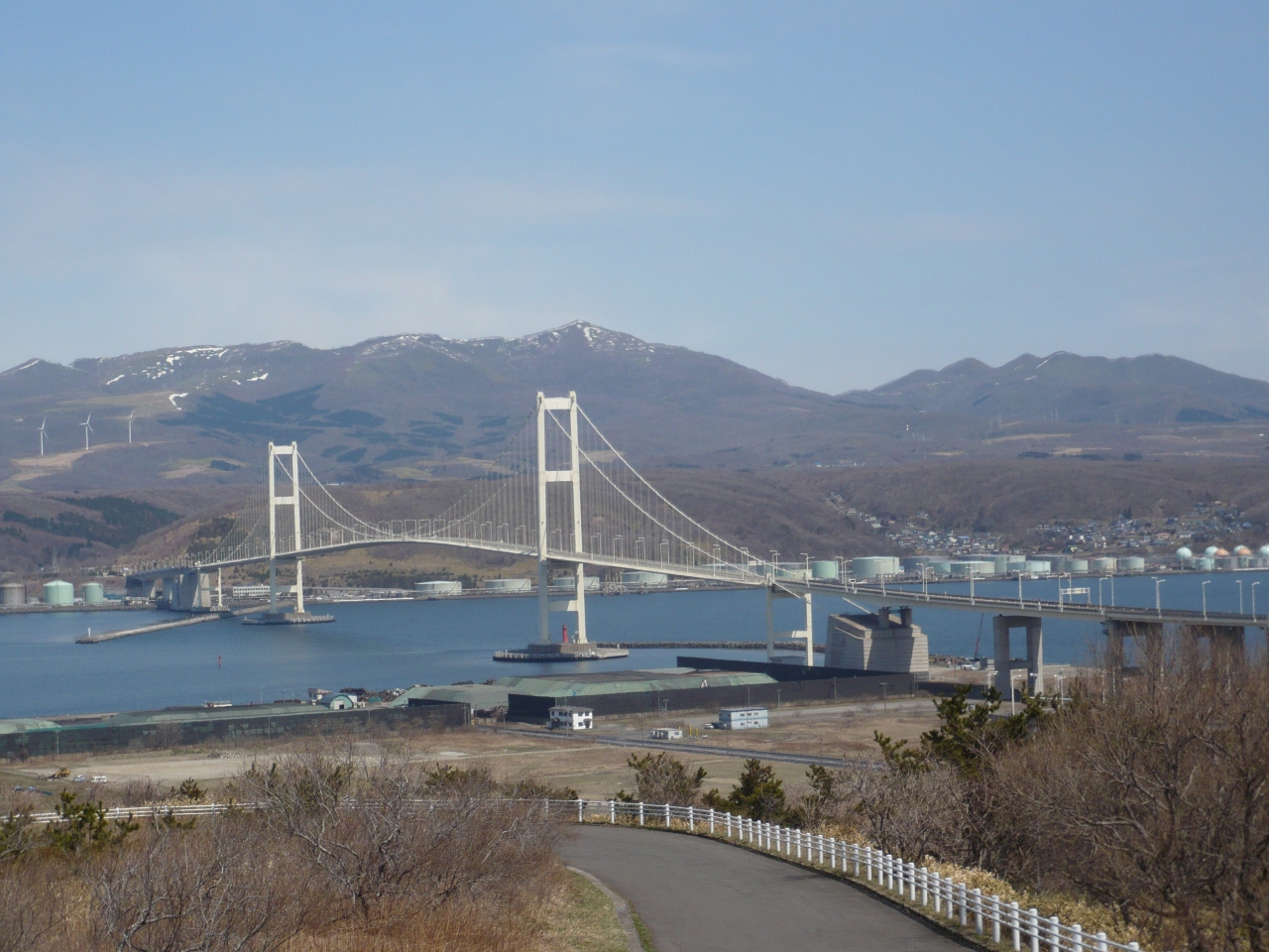 何年ぶりかというくらい久々に来てみたら綺麗になってました。70代位の2組の御夫婦が’綺麗だね~’とビデオ撮ってました。展望台の左側には白鳥大橋、正面には遠くに羊蹄山が見えます。今日は少しかすんで見えました。晴天の日は正面から右側に函館の方角、駒ヶ岳までの山々っていうんでしょうか連なって見えてほんとに素敵です。絵鞆岬の展望台からは駒ケ岳は位置的に見えないですが、祝津の展望台からはよく見えます。今日は雲に浮かんだように見えてました。ゴールデンウイークに登別方面に来る予定の方は是非寄っていってほしいです。お正月の初日の出の地球岬は有名ですが、絵鞆、祝津とも景色素晴らしいです。