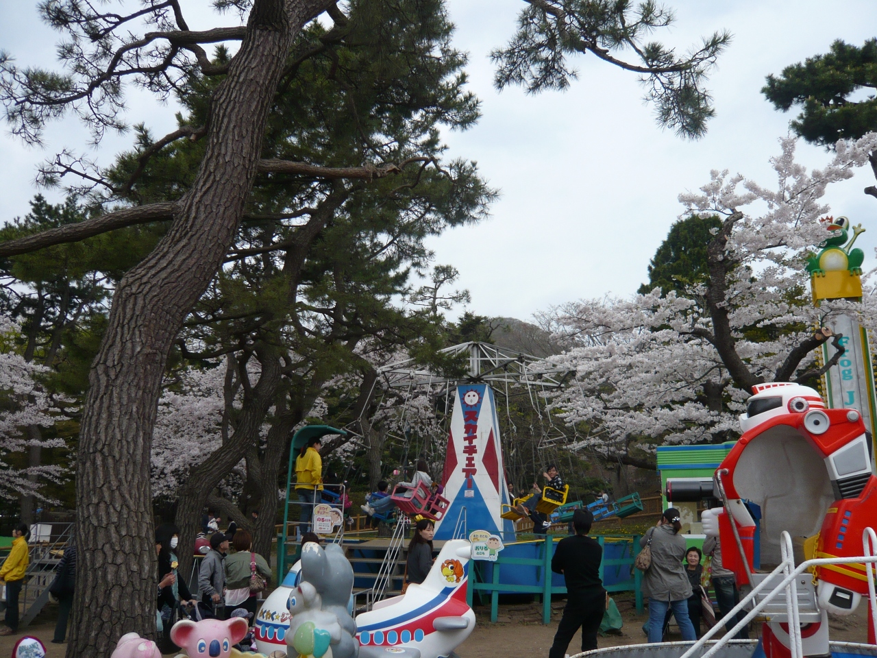 旅行雑誌を見て初めて行ってみました。満開の桜の間に小さな遊園地がある感じです。とても古い感じの乗り物ばかりですが、小学校低学年くらいまでならとても楽しめそうです。私の息子は6年生ですが、物足りないようで1つ乗ってやめちゃいました。ゴールデンウィークだったせいもあり屋台がずらっと並んでいておいしそうなにおいが、、、ここは駐車場が少なくて車止めるのが大変でした。花見の季節が終わったらそうでもないのかもしれないけれど行く時は駐車できる場所調べていったほうがよいと思います。
