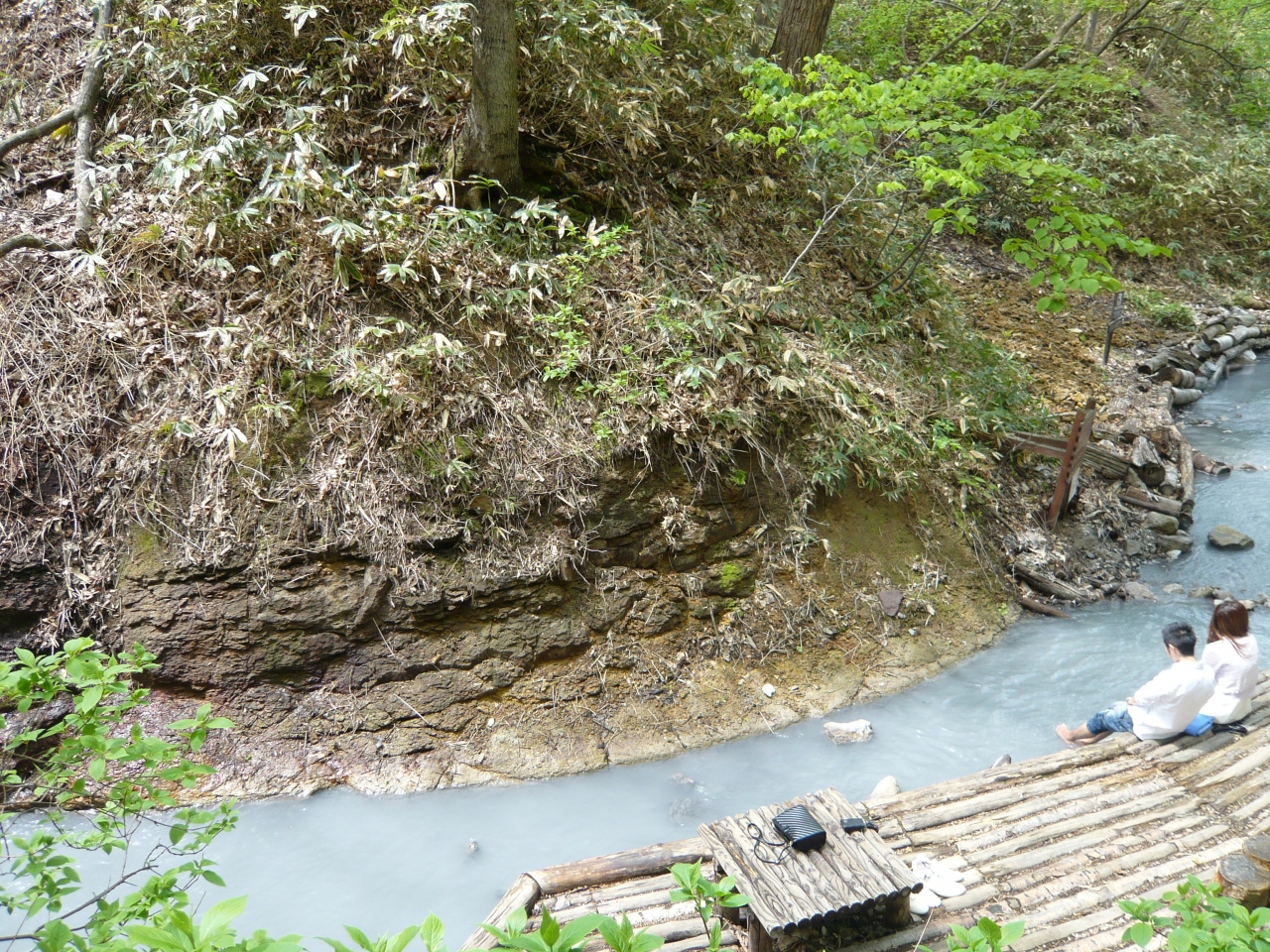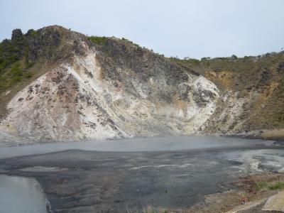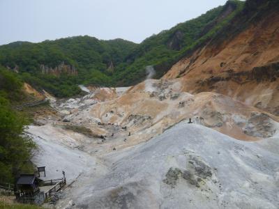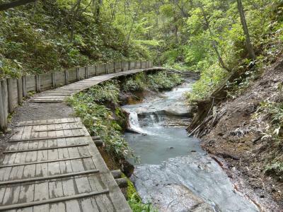 地獄谷の駐車場に車を止めて、地獄谷~大湯沼~足湯の順番がおすすめです。この日は天気も良く新緑の中とても気持ちよかったです。硫黄の香り漂う中、山(車も通りますが数少ないので危険というほどではないです。)に向かうようにスタートします。結構な距離あり、アップダウンもあり、足湯や地獄谷の奥に進む歩道はぬれて滑るので運動靴がよいと思います。足湯は流れる自然の温泉で行ったら感動です。小さい子は足湯までの下りの道がちょっとキツイですが足湯は浅いので危なくはないと思います。子供さんは着替え持って行ったほうがよいです。登別温泉や、道南方面に来たらぜひぜひいってほしい所です。