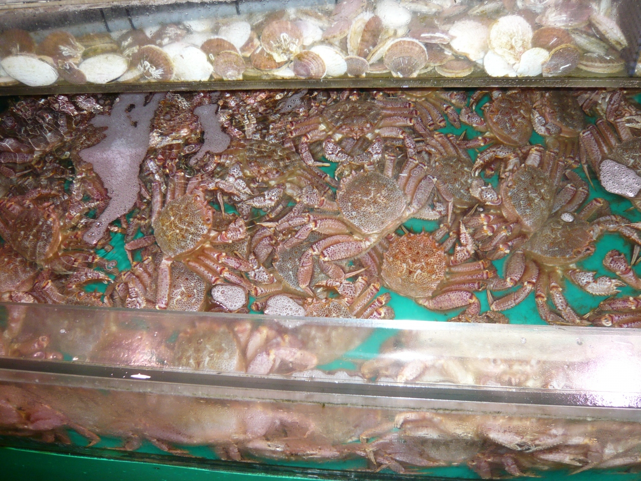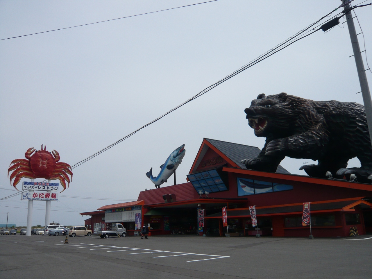 国道36号線を札幌から登別方面に向かって行くと海側にあり、屋根の上にどど~ン!とおっきい熊と鮭、看板には蟹見えてきます。この日は観光バスが3台止まっていてたくさんの高校生がお買い物してました。お土産用な感じなのでたくさんの立派な海産物と、お菓子類置いてあります。立派な分お値段も立派かも~。食事もできて時々団体さんでにぎわってます。味は食べたことないので分かりませんが、ちょっと立ち寄って、おっきい熊達をカメラにおさめるだけでも北海道旅行の土産話になるのではないでしょうか。