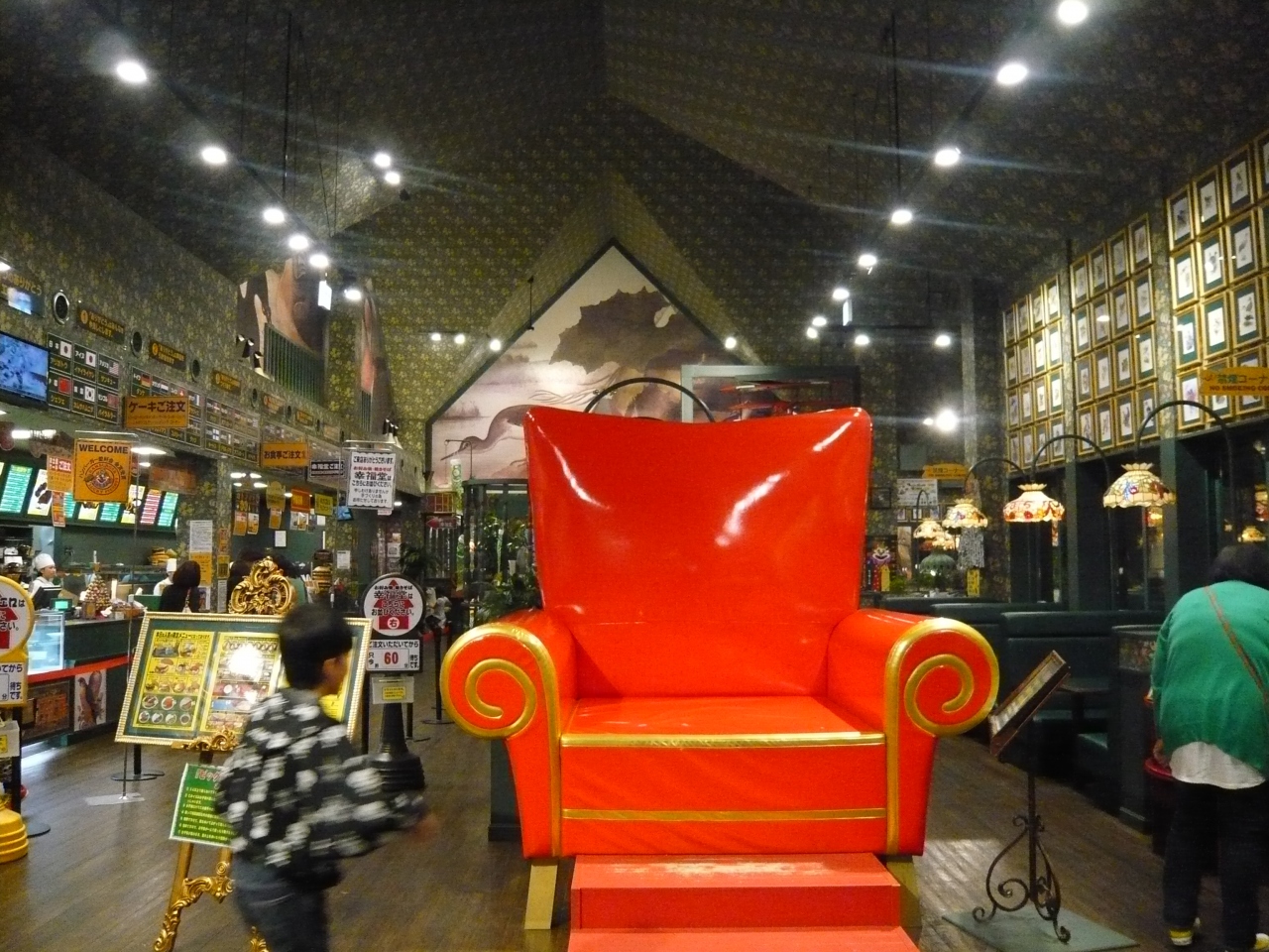 緑の大きい建物で敷地も広いので目立ちます。入り口を入るとドーン!と真っ赤な椅子が!財運に恵まれるとかで早速みんなで座りなでました。左側には黄色の椅子が!子供が座ると出世するんだとか。他にも背の高いキリンがいたり(もちろん偽物ですが)なんか楽しかったです。函館の帰り道で夜7時半くらいに行ったのですが、お土産コーナーもあって帰るときに見ようと思っていたら、多分8時くらいに閉まっていて、店は遅くまで開いてるのに何で~!がっかりでした。私はあまりチャイニーズチキンは好きではないので名前忘れましたが普通の感じのバーガー食べましたがそこそこおいしかったですがわりと大雑把な味な感じです。でも函館にいくと当たり前のように必ず食べちゃいます。