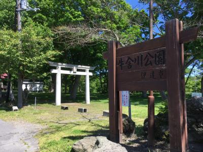 伊達市道の駅にある大きな総合公園で、市立体育館や、記念館などもあり、広い敷地ではイベントなどが行われたりします。入口には大きな兜や、石づくりの大きな門があるのでいい撮影スポットになっています。平日でしたが駐車場にはたくさんの車と観光バスが止まっていて道の駅の方はとても賑わっていました。