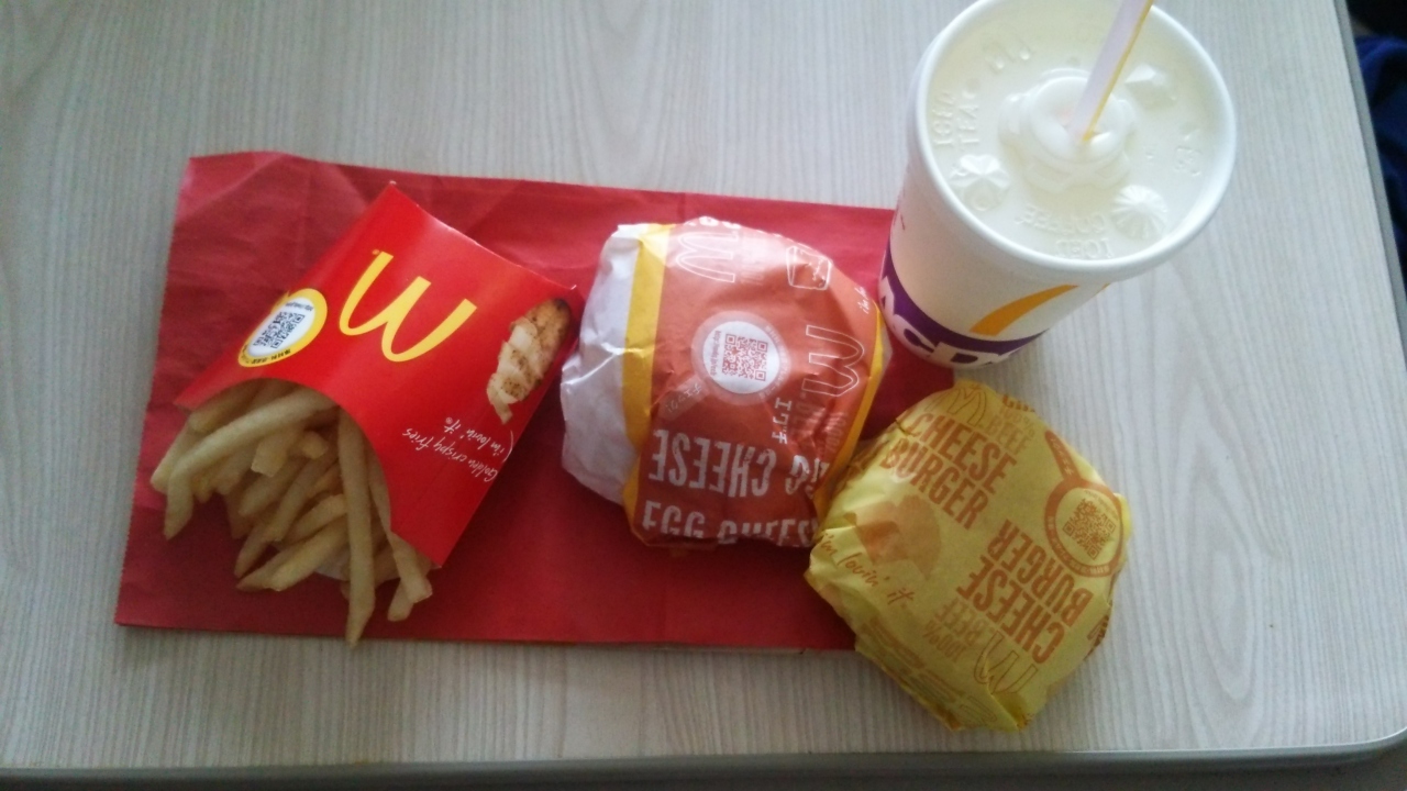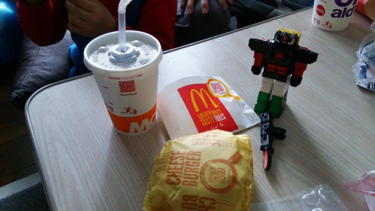 土浦のイルミネーションを見た帰りに軽く何か食べよう、でも車から出たくないしという意見で、マックにドライブスルーで寄りました。大人はエグチ、子供はハッピーセットわ買って帰りました。月見バーガーがエグチセット500円で常時販売されているのはとてもうれしいです。