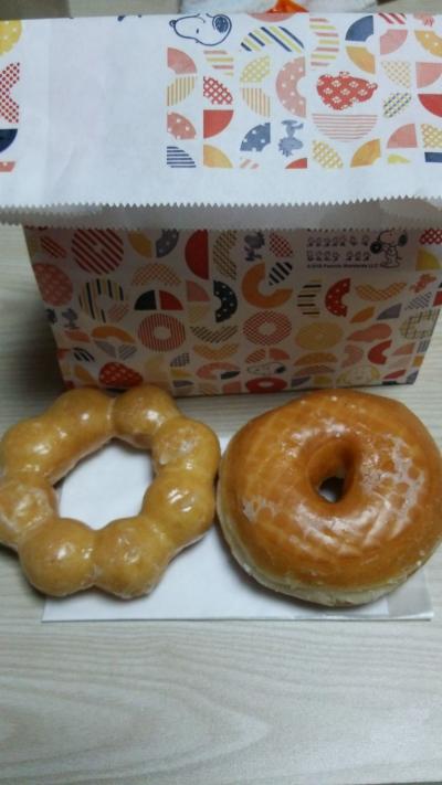 携帯の特典があったので行ってきました。イオンの入口近くにあります。同じように携帯を持った人たちがたくさん並んでいました。こちらのミスドは自分で選んでトレイにのせるシステムです。息子はハニーデップ、私はポンデリングを買いました。モチモチポンデ美味しかったです