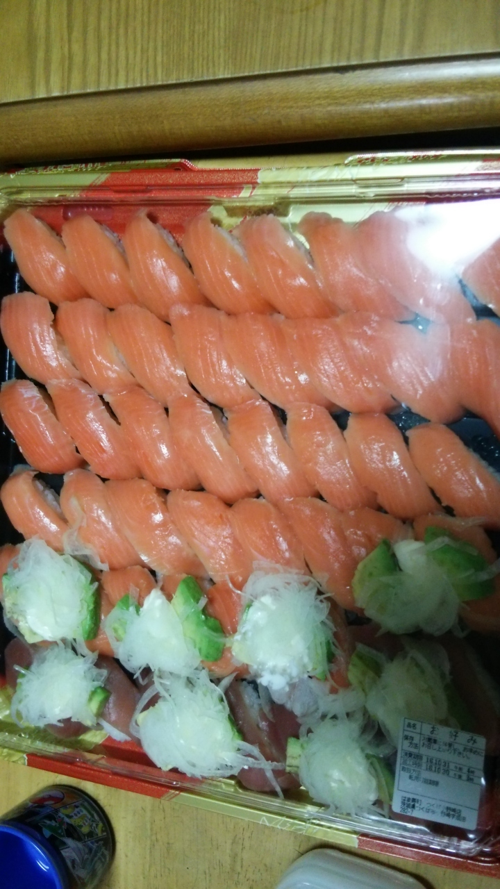 千歳空港からの帰り道、夜ご飯の支度が面倒なのでお寿司を買っていこうと寄りました。丁度夕食時間帯だったのでたくさんの人が中で食べていましたが、先に電話で注文しておいたので待つことなくお会計。留守番の息子たちのネタのリクエストがほぼサーモン納豆巻きで大変な量になっていました。安いけどネタはそれなりに新鮮で美味しいので時々利用しています。