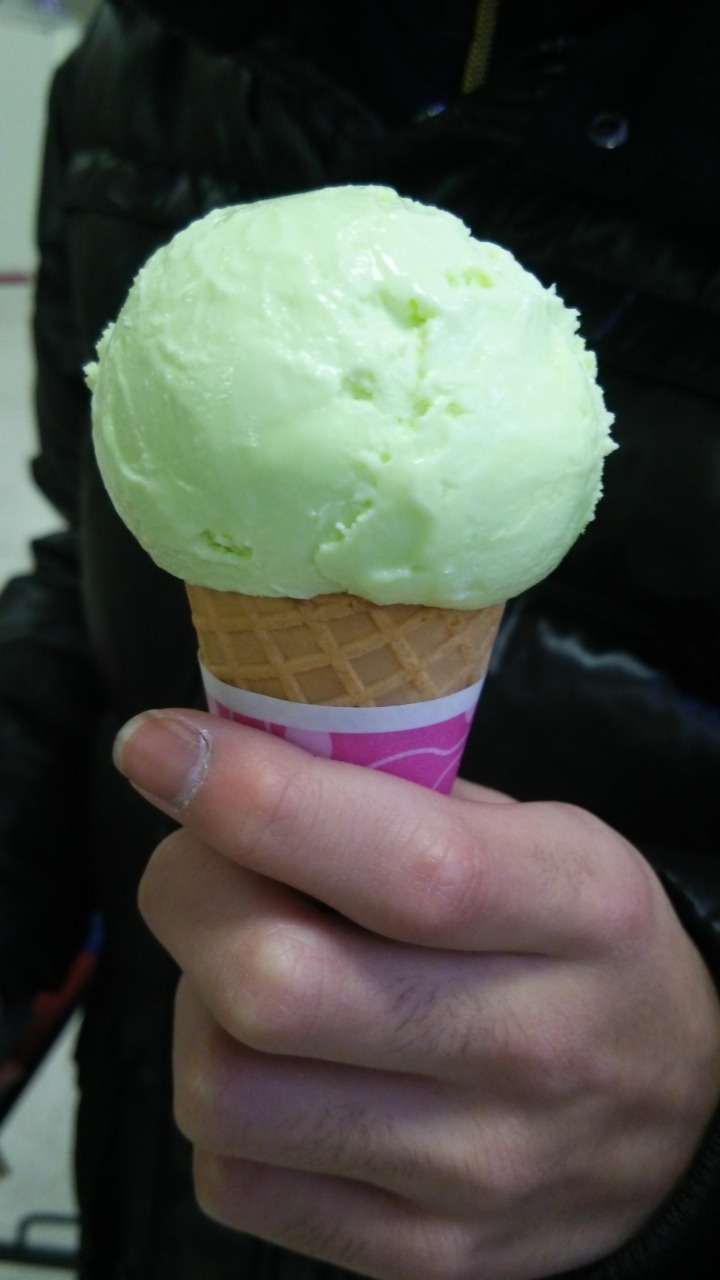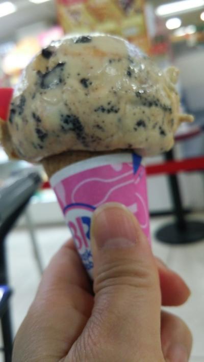 携帯の特典でシングルコーンが1個無料で食べれるので行ってきました。せっかくだから食べたことのないアイスにしようと、トリック オア アイスクリーム を食べてみました。美味しかったけど、キャラメルとチョコクッキーが入っているので思っていた以上に甘くて、最後まで食べるがちょっと辛かったです。