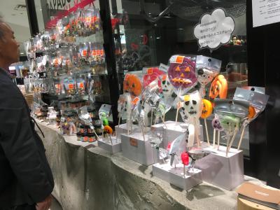 可愛いハロウィン用のキャンディが店頭にたくさん並んでいてとても目を引きました。通りかかったときにちょうど飴を作る所を実演していて、太ももくらいある太い飴の塊が小指ほどの細さになっていく工程がとてもすごかったです。できたキャンディは試食でいただけます。ハロウィン用のキャンディが可愛かったので孫のお土産に購入しました。