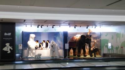 国内線ターミナルと国際線ターミナルの間の通路に展示してあります。小さいサイズからデカッと思うほど大きなゾウや鹿が飾ってあり、反対側には、ディズニーランドのイッツアスモールワールドの一部を思わせるようなかわいい作りになっていてどちらもとても目を引かれます。