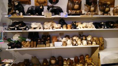 国内線ターミナルビル2階にある、アイヌの工芸品を扱うお店です。木彫りの熊やコロポックル、アクセサリー、また、アイヌの伝統衣装やバッグ、ポーチなど販売されていました。でも、お値段もそこそこ高いので見るだけで十分な感じです。