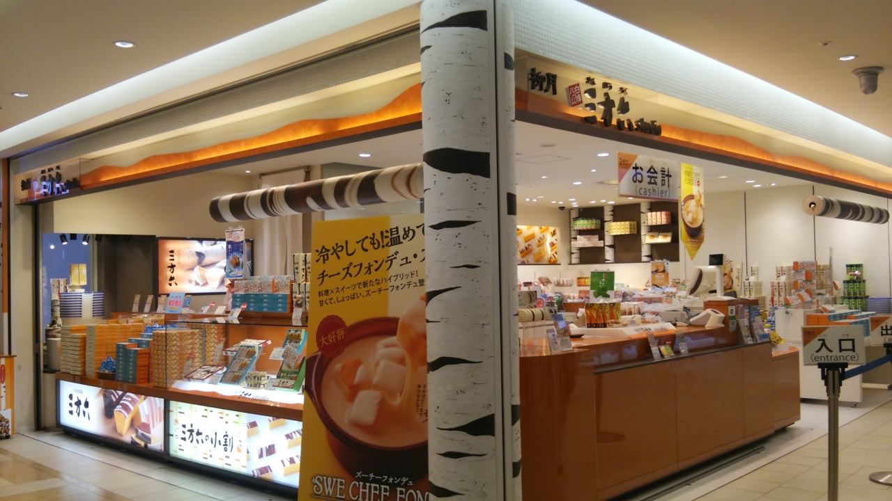 国内線2階にあって、明るくて木の幹の形をした柱などがかわいいお店です。柳月といえば、三方六が有名で、お土産にももらったりあげたりしていますが、ばらまき用の小さいサイズがあるのもいいですね。私的には抹茶の三方六が大好きです。