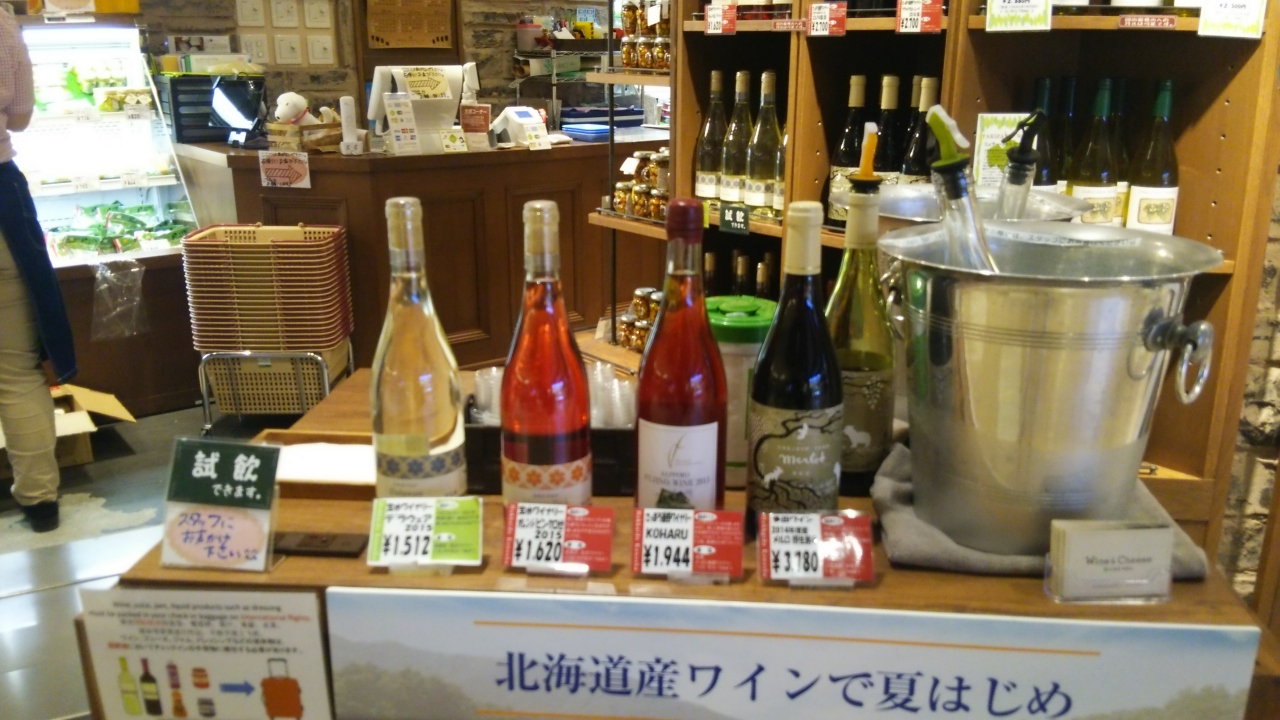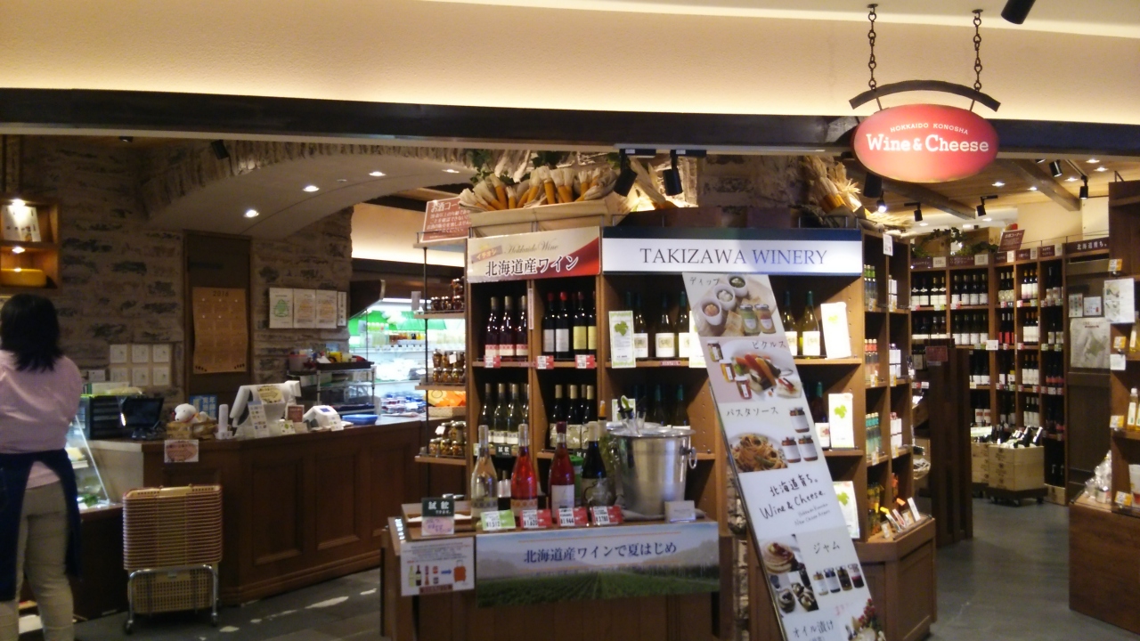 北海道のワインとチーズを取りそろえたお店でたくさんのワインが棚にズラリと並んでいてどれにしようかわからないほどです。試飲もしていたので白ワインいただきました。美味しかったです。他にもジャムやソーセージ、ハムなどワインに合いそうな食品が販売されていました。