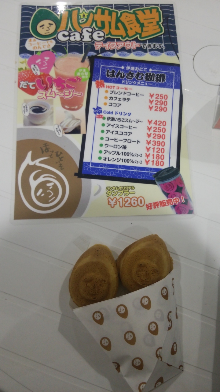 伊達道の駅の中にあります。ハンサムな顔がついているたい焼きです。週末だったこともありたくさんの人がいました。1個80円だったので安い!と思ってクリームと餡と買いましたが、1口で食べれるくらい小さくて、なので餡もクリームもちょこっと、ちょっとがっかりでした。1回食べれば十分ですね。