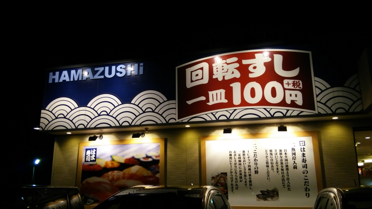 平日90円、土日祭日100円のネタがメインのお寿司屋さんです。この値段なので特別新鮮というわけではないですが、普通に美味しいし、サイドメニューやデザートも充実しているので、結構利用しています。子供連れの家族がたくさん来ていました。