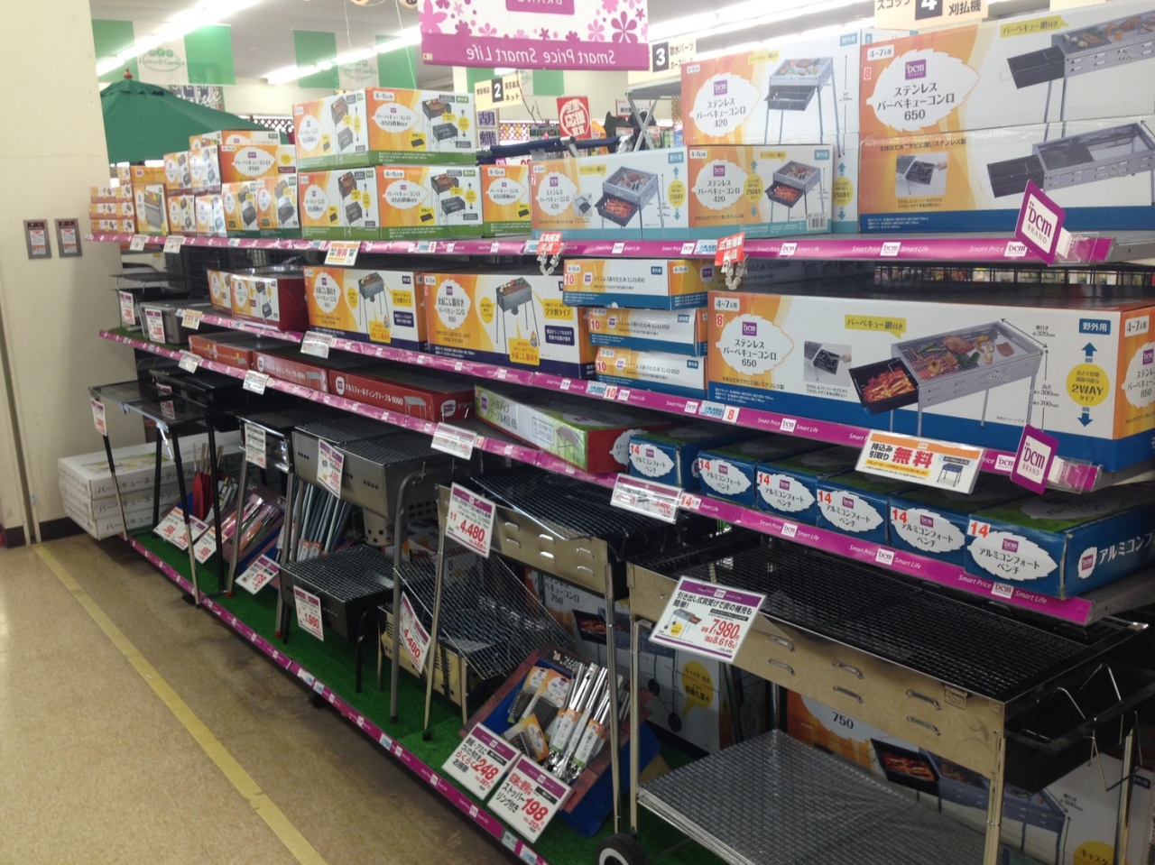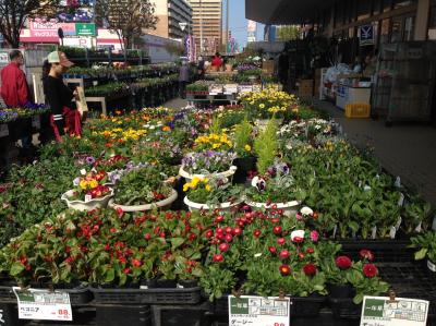 ゴールデンウィークに焼き肉をするのに焼き台を買いに行きました。この時期、入口にはたくさんの花が販売されていて、大量に買っていく人たちがいました。もう少しすると、トマトやキュウリの苗の販売も始まります。