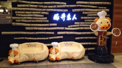 3階のグルメワールドにあります。店前の豚の椅子が目をひきます。写真を撮っている人もいました。温泉卵付きの豚丼を食べましたが、あまじょっぱいタレがお肉によくからんでいて美味しかったです。ただ結構味付けが濃いので私は少しだけ残してしまいましたが、息子は、うまい!といって私の残した分も食べていました。提供時間も早いのがいいです。