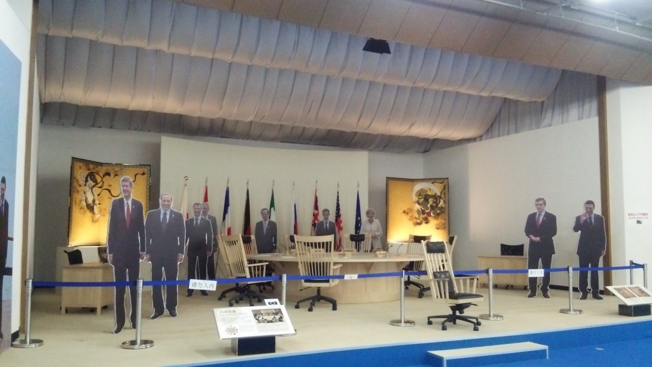洞爺湖バスターミナルの3階にあります。館内には、会議で使われた円卓や、当時の首脳の写真パネルが展示されています。もう8年も前なので首脳パネルの顔ぶれが懐かしかったです。入場無料なのであまり期待もせずに入りましたがなかなか楽しめました。