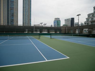 プールの隣にはテニスコートがありました。2面もあって広々!ラケットやボールの貸し出しもあります。