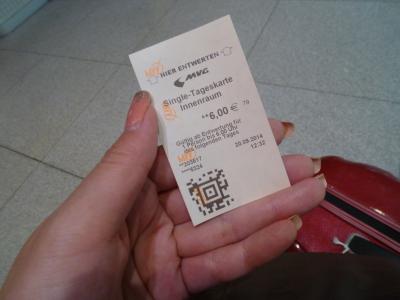地下鉄の切符。白ゾーンの1日券6ユーロ