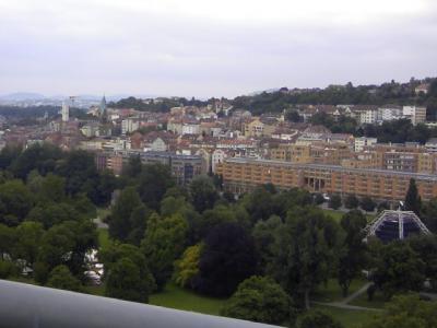 駅の出口を正面に見て、一番左のホームの前にベンツの建物に登るエレベーターがある。それが無料の展望台だ。実は、屋上から町が眺められる。- 旅行時期