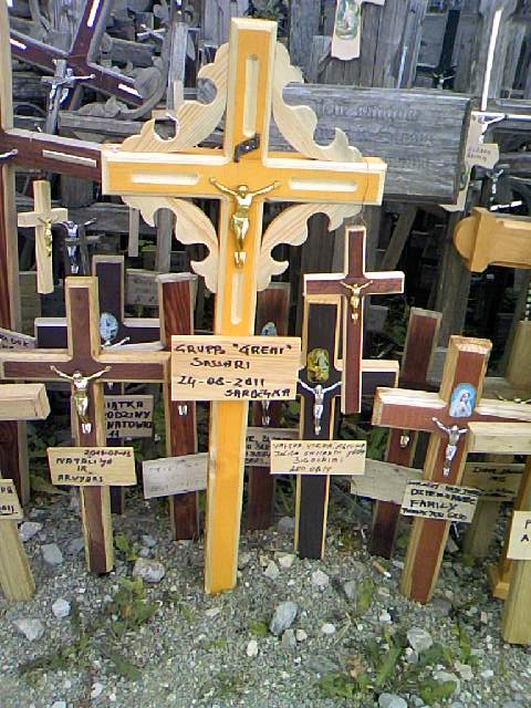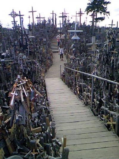 門のくぐってから、はるか奥にある丘が、大きな十字架を含めたすごい数の山が見えてきます。大きさ数cmから数mにおよぶ大きな十字架までいくらあるのかしらとわからないほどの数が立っています。