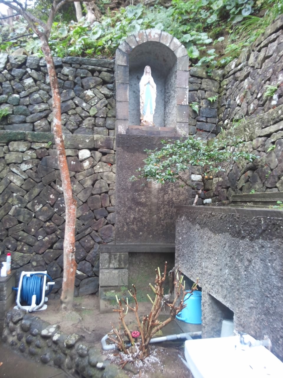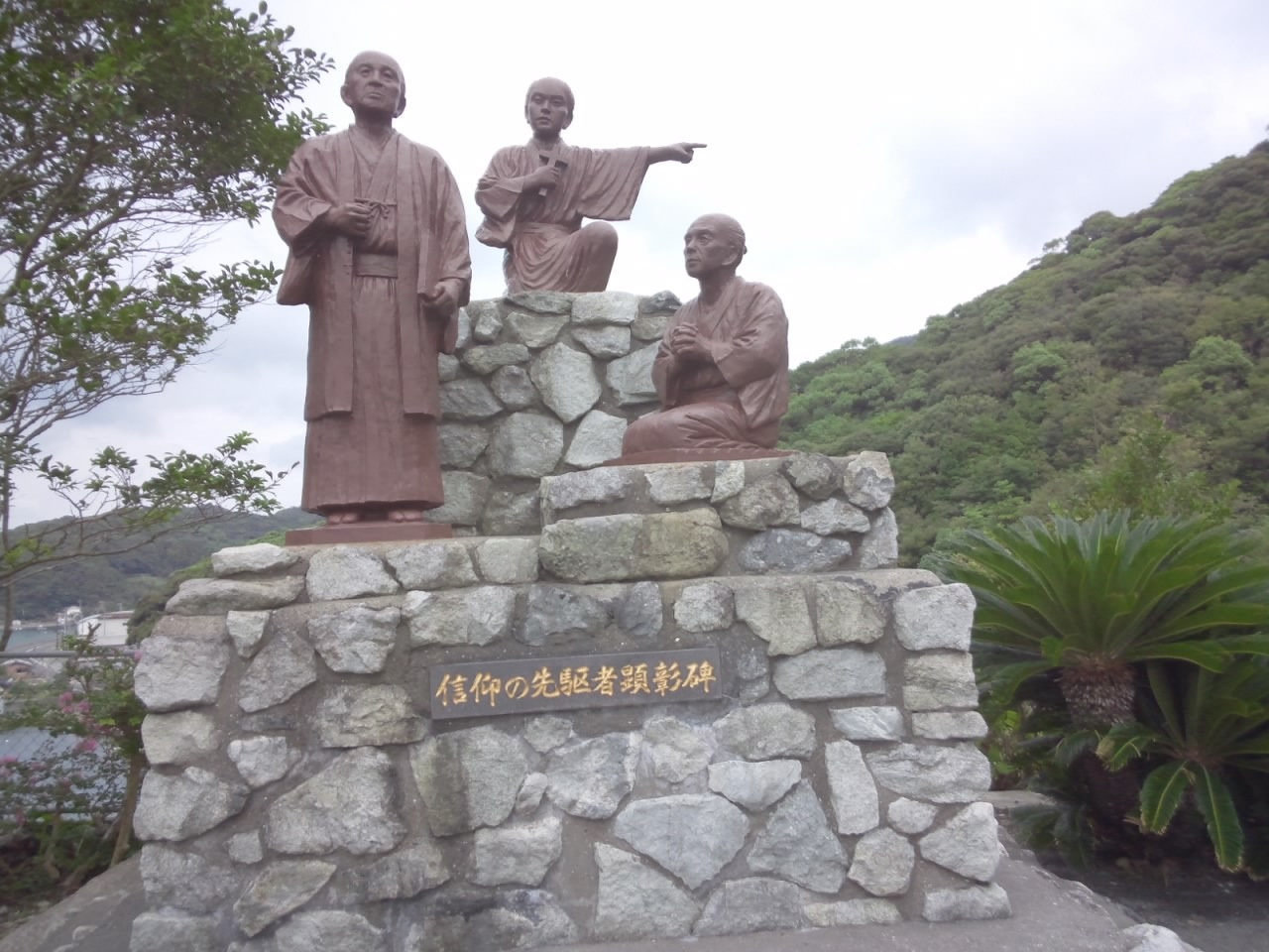 明治の初め、「五島崩れ」の時に、迫害を避けて、船でしか行けない断崖の洞窟に隠れたが、焚火の火の煙を、船に見つけられて、拷問を受けたそうです。